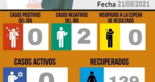 REPORTE DEL SAMCO ANGÉLICA Y COMUNA LOCAL⚠️ 🗓 21 /08 /2021 ❕SITUACIÓN EPIDEMIOLÓGICA COVID-19 ➡️Comunicamos que 2 (Dos)pacientes recibieron el ALTA MÉDICA ➡️Informamos a la población que se recibieron los resultados de 2( Dos) hisopados pendientes y arrojaron NEGATIVO para COVID-19 ➡️ No hay casos positivos activos . ▪︎129 Recuperados …