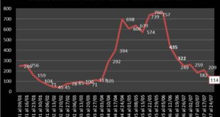 De los 30 contagios diarios se pasó a 16. En tanto los fallecidos también continúan descendiendo: hubo 2 contra los 4 de la semana anterior. Con los números de este sábado, Rafaela terminó con 114 casos de coronavirus semanales (18 al 24 de julio), 95 menos que la semana …
