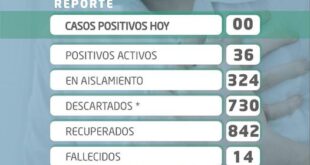 INFORME EPIDEMIOLÓGICO Nº 285: 4 de julio 2021 Hoy no se reportan casos. 36 positivos activos en total, debido a que 8 personas se han recuperado y recibieron el alta. Además, contamos con 324 personas en aislamiento por prevención. . Total de casos hasta la fecha: 819. Total de dosis …