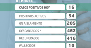 En ésta semana los informes del comité de Crisis de San Vicente mostraron una importante suba de casos de coronavirus , el último del 19 de Mayo reportó 16 nuevos casos, con 54 casos activos y 205 personas aisladas . En este reporte informamos 16 nuevos casos positivos, los cuales …