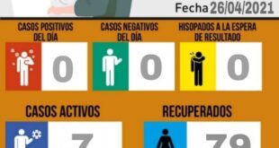 Así lo refleja el reporte del día de hoy, con 8 altas médicas y de los 127 el.ultimo reporte, la cifra bajó considerablemente a 79 . Reporte . ⚠️REPORTE DEL SAMCO ANGÉLICA Y COMUNA LOCAL⚠️ 🗓 26 /04 /2021 ❕SITUACIÓN EPIDEMIOLÓGICA COVID-19 ➡️ Informamos que no hay hisopados a …