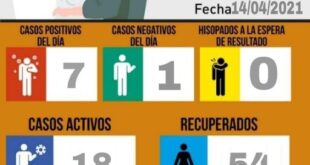 Read More »Coronavirus :Con los últimos 7 positivos se acumulan 18 casos activos en nuestra localidad