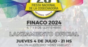 La comisión directiva de la Asociación Mutual y Social del Club Atlético Brown de San Vicente anunció la llega del lanzamiento oficial de la Fiesta Nacional de la Cosechadora. La 26° de Fi.Na.Co. ya se siente y este Jueves 4 de julio, a las 21 horas, en el Salón Auditorio …