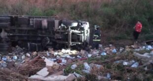 Un colectivo que trasladaba personal penitenciario chocó este lunes contra un camión que transportaba vinagre en la autopista Rosario – Santa Fe. Producto del impacto, el vehículo de carga terminó volcando mientras que el ómnibus quedó sobre la banquina con parte de su frente destruido. El siniestro se produjo en el …