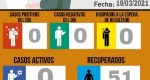 ⚠️REPORTE DEL SAMCO ANGÉLICA Y COMUNA LOCAL⚠️ 🗓 19 /03/2021 ❕SITUACIÓN EPIDEMIOLÓGICA ➡️ Comunicamos que los 4 (Cuatro) casos que eran activos recibieron el ALTA MÉDICA. ➡️ No se registran casos activos en nuestra localidad. * 51Recuperados ➡️No hay personas en Aislamiento #CuidarteEsCuidarnos #NosCuidamosEntreTodos #NosSeguimosCuidando