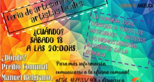 Próximo Sábado 13 de Marzo feria de artesanos y shows de artistas locales en el predio Manuel Belgrano , el área de cultura Local convoca a artesanos y artistas para inscribirse en la comuna y participar del evento . Los interesados dirigirse a las oficinas dr la Comuna Local