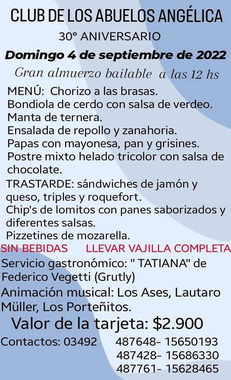 Próximo Domingo se celebra el 30 aniversario del Club De Angélica y su Presidente Nino Manzo afirmó que la venta de tarjetas viene muy bien y confia una gran convocatoria para el próximo Domingo