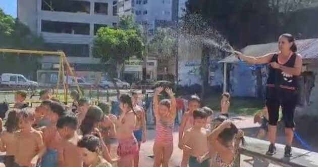 Home / Noticias / A la escuela en malla: en Rosario «manguerean» a los alumnos por el calor
