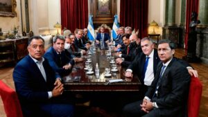 Del encuentro también participó, por algunos minutos, el jefe de la UCR, Gerardo Morales, gobernador de Jujuy. Ratificó su postura de avalar el refinanciamiento de la deuda, no así el programa económico propuesto por Guzmán. El jujeño lanzó incluso una propuesta: convocar a las autoridades del FMI para que emitan su opinión al respecto. Pero fue descartada. “El FMI no tiene por qué involucrarse en nuestra técnica legislativa”, objetaron.