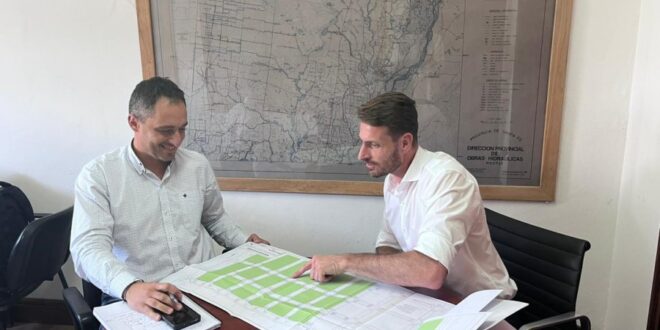El intendente Gonzalo Aira se reunió con el secretario de Recursos Hídricos, Nicolás Mijich, para presentar el proyecto final elaborado por el área de Obras Públicas.