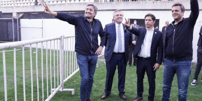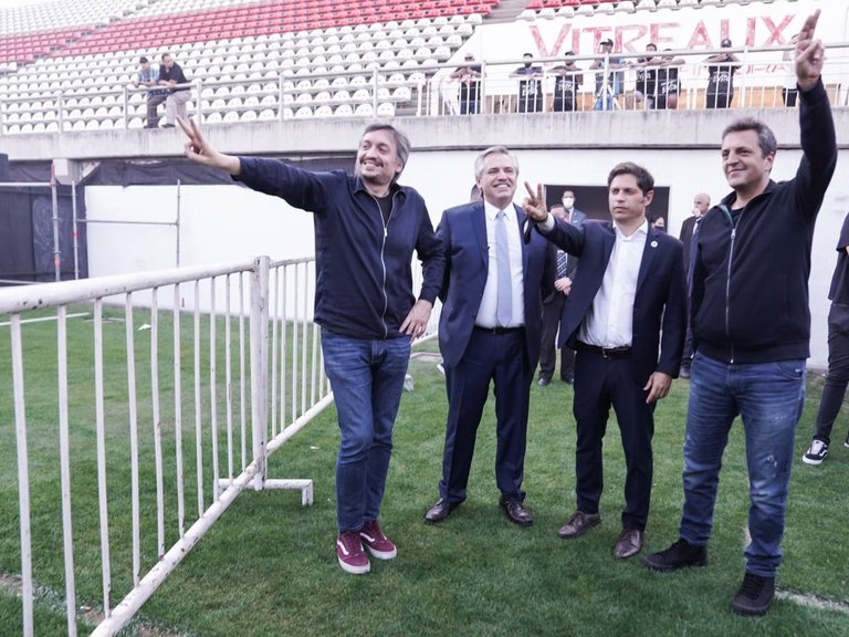 “Si todavía no cerramos un acuerdo con el FMI es porque no nos vamos a arrodillar”, dijo en un encendido discurso frente a la militancia. En el estadio estaba La Cámpora, el Movimiento Evita, Nuevo Encuentro, Camioneros y agrupaciones kirchneristas más pequeñas que se movilizaron desde el conurbano. Arriba del palco hubo gobernadores, intendentes, legisladores, sindicalistas y representantes de las organizaciones sociales. Una nueva muestra de unidad.