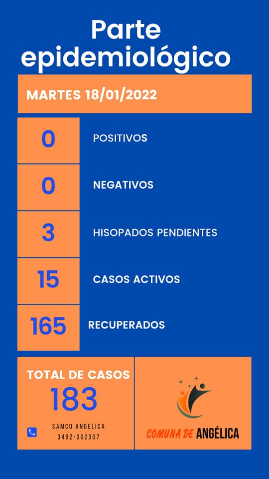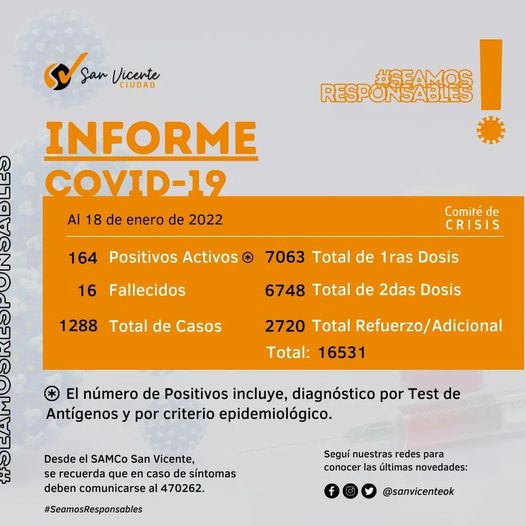➡️Se informa que aun NO se recibieron los resultados de los 3 (Tres) hisopados pendientes correspondientes al 17/01 .
