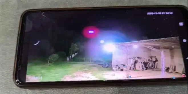 El hecho fue registrado por las cámaras de seguridad de la propiedad, y el video rápidamente se viralizó en redes sociales y grupos locales. En la filmación se observa cómo un brillo intenso aparece en el horizonte y se desplaza mientras la cámara cambia de ángulo, lo que alimentó la hipótesis de un posible avistamiento de objetos voladores no identificados (OVNIS).