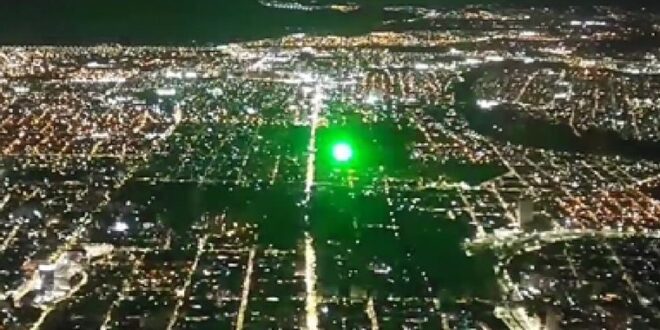 Y añadió: «Un colega piloto que venía en cabina en el tercer asiento logró tomar este video, tapando con su celular mientras grababa y que no me dé en mis ojos. No entiendo bien la gracia».