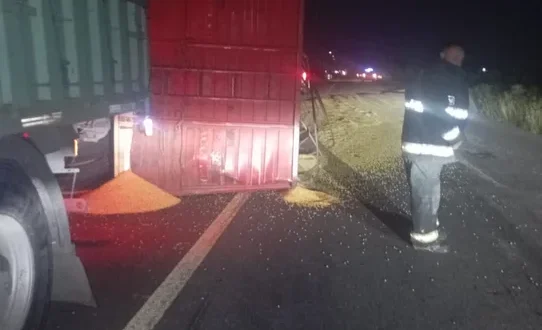 Un accidente que pudo tener consecuencias mayores se registró durante las últimas horas del lunes en autopista 19, en jurisdicción de la localidad de La Francia. El vuelco de la carga de un transporte pesado obligó a un importante despliegue de las fuerzas de seguridad y servicios de emergencia para liberar la calzada.