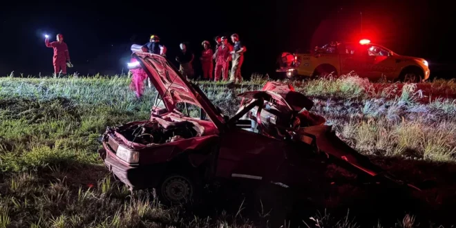 Como consecuencia del choque, la conductora del vehículo menor quedó atrapada entre los hierros retorcidos. Personal de Bomberos Voluntarios de María Juana intervino rápidamente y realizó tareas de corte y extricación para poder liberarla.