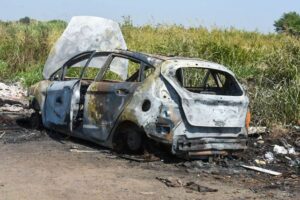 El vehículo de la víctima fue reducido a chatarra y no quedó rastro sin ser dañado por el fuego. Este miércoles por la mañana mientras el equipo de La Capital y otros medios fotografiaban el lugar dos hombres en moto se apuraban por llevarse las llantas del vehículo, también carcomidas por el fuego. Dijeron que fue lo único que pudieron rescatar para después vender como chatarra, y apenas sabían por comentarios escuchados ahí mismo que se trataba del auto de una persona que había sido asesinada.