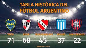 Los cinco clubes más ganadores del fútbol argentino a nivel local (Fuente: rhdelfutbol)A su vez, Boca Juniors obtuvo su 49° título oficial de máxima categoría a nivel nacional y se pone a uno de River Plate que tiene 50, en la tabla de Títulos Locales (sumando Torneos de Liga y Copas Nacionales) y continúa a sólo tres escalones en cuanto a Ligas (36-34). Y lo dicho, el Xeneize le sacó tres estrellas de ventaja a su clásico adversario en la tabla histórica del fútbol argentino.