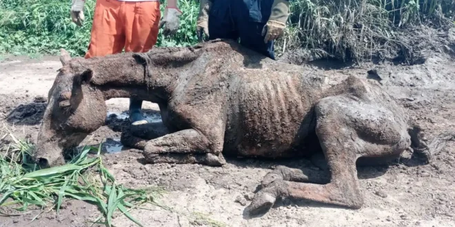 El caballo se encontraba con evidentes signos de desnutrición e imposibilitado para movilizarse. Fue hallado en un camino rural de Colonia Isleta, donde allí se dirigieron 5 bomberos voluntarios para colaborar con el hecho.