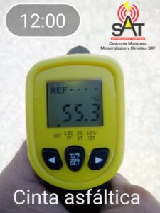 Más tarde, a las 14.23, el Centro de Monitoreo repitió la medición con pirómetro infrarrojo sobre la calle y la marca ascendió a 62 grados.