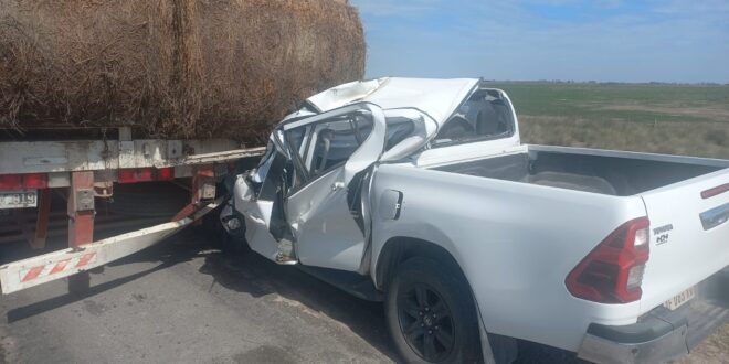 Una camioneta embistió a un camión (Semi) que transportaba rollos y quedó con la trompa incrustada en la parte trasera del vehículo de mayor porte , el único ocupante de la Toyota Hilux quedó atrapado en el interior del rodado y por las intensas tareas de los bomberos de nuestra localidad pudo ser rescatado .