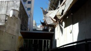 Por razones que se investigan, las bandejas de contención en las que se encontraban los trabajadores cedieron y cayeron al patio del Superior de Comercio.