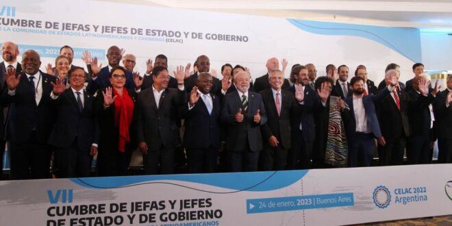 Los países de América Latina y el caribe nucleados en la CELAC llevaron adelante un encuentro histórico en Buenos Aires en el que firmaron una declaración conjunta con cien puntos de consenso vinculados a un nuevo proceso de integración en la región, que pretende «promover la unidad y la diversidad política, económica, social y cultural de los pueblos». La presencia del presidente de Brasil, Inácio Lula da Silva, en la séptima cumbre de jefes de Estado, fue uno de los acontecimientos más importantes del evento ya que su triunfo significa un giro en la dinámica de la región. El documento rubricado por los jefes de Estado hace hincapié en la defensa de los recursos naturales y estratégicos; exige de manera reiterada el levantamiento del bloqueo a Cuba; resalta la importancia de fomento del diálogo con Venezuela y el principio de no intervención e injerencia en las democracias de sus pueblos. Hubo respaldo explícito al reclamo argentino por Malvinas, divergencias con Luis Lacalle Pou y tensa situación por Perú, todos ejes del encuentro que mantuvieron los mandatarios a puertas cerradas.