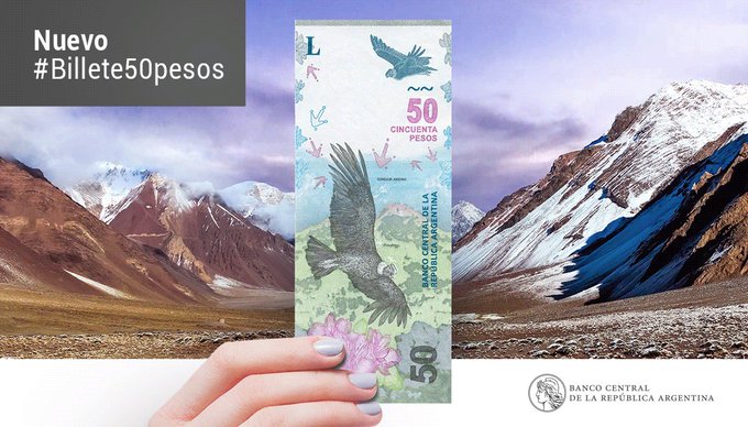 El Banco Central (BCRA) puso en circulación el billete de 50 pesos con la imagen del cóndor, ave emblemática de la cordillera andina y sierras vecinas de nuestro país, que será distribuido desde este jueves progresivamente a través de la red de sucursales bancarias y cajeros automáticos de todo el país