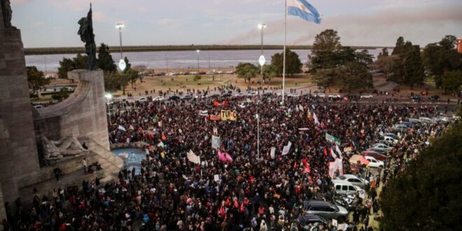El Monumento a la Bandera, epicentro de los reclamos por las quemas en las islas. (Foto: Alan Monzón/Rosario3)
