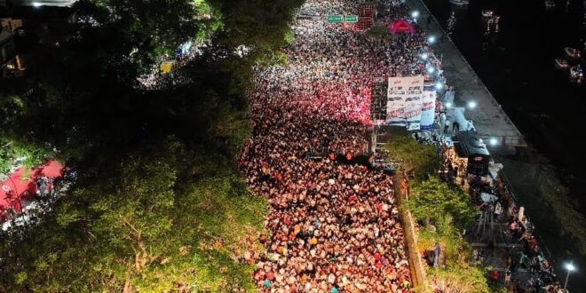 Como no podía ser de otra manera miles de santafesinos festejaron junto al río el aniversario 449 de la ciudad de Santa Fe. En un marco por demás de multitudinario, el show de Los Palmeras coronó una noche histórica en la Costanera Oeste, donde el corredor de Avenida 7 Jefes lució colmado de punta a punta. Al ritmo de la tradicional cumbia santafesina, conservadoras, reposeras y mucho calor, la ciudad redondeó unos festejos bien propios de la cultura local.