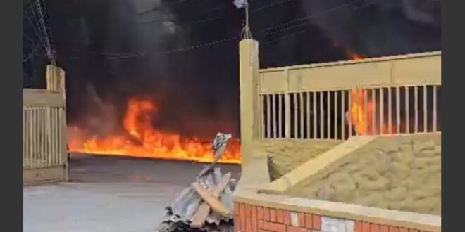 Strada también señaló que «las casas linderas se quemaron, de hecho se ven salir las llamas de la casa que está pegada a este depósito que explotó».
