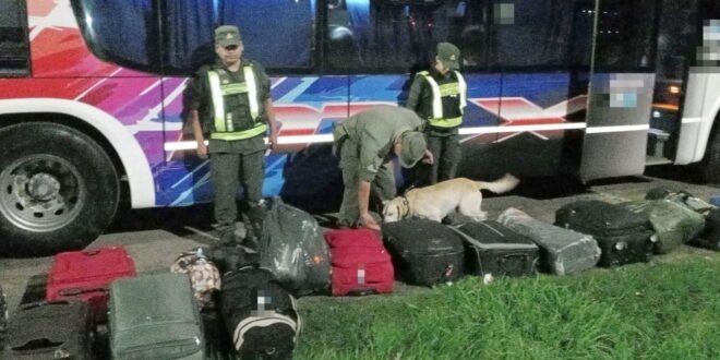 Ocurrió en la madrugada de este martes, sobre la Autopista Rosario – Santa Fe kilómetro 22 de la localidad de Aldao, cuando el personal de la Sección Seguridad Vial “Oliveros” dependiente del Escuadrón 46 llevaba a cabo la inspección de un colectivo de larga distancia, que circulaba con destino la provincia de Corrientes.