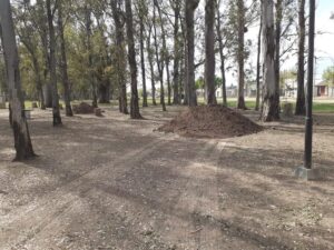 Durante el fin de semana, se trabajo en el piso , 15 camionadas de tierra distribuidas en puntos centrales del predio, se sumaron a los trabajos realizados en el quincho comunal .