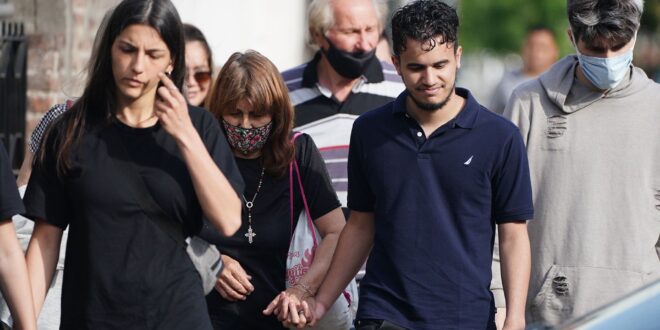 Los restos del kiosquero Roberto Sabo (48), asesinado a balazos el domingo pasado, durante un robo en su comercio, eran velados esta martes en una cochería del partido de Morón. A poco más de dos horas de comenzada la despedida, Pedro y Nicolás, el padre y uno de los hijos de la víctima, hablaron con la prensa, y se fundieron un abrazo lleno de tristeza y emoción. Luego, el joven de 25 años, acompañado de su hermano menor, Tomás, le dejó un duro mensaje a Alberto Fernández: “No creo que pueda mirarme a los ojos”.