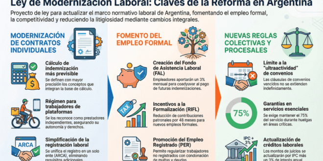 El proyecto, que empezará a discutirse en el Senado, implica una reconfiguración amplia del sistema laboral argentino, desde las modalidades de contratación hasta el régimen de indemnizaciones, las negociaciones colectivas, el funcionamiento de la justicia laboral y los incentivos para la inversión.