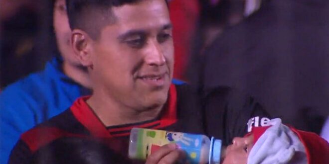 El «Toto» Iñíguez fue elegido por FIFA gracias a esa tierna imágen dándole la mamadera a su bebé Tiziano Lionel en el Cementerio de los Elefantes. Fue en mayo de este año contra Barracas. «Tengo mi celu roto, me enteré por mi esposa hoy a la mañana; no lo puedo creer», dice al diario de Santa Fe.