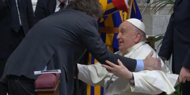 “Abrazo a la distancia Santo Padre”, escribió el Presidente en su cuenta personal de la red social X (exTwitter) junto a una serie de imágenes de un encuentro que tuvo con el por entonces jefe de la Iglesia Católica.
