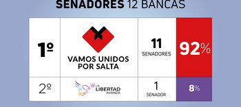 Con casi la totalidad de los votos escrutados, la alianza que encabeza el gobernador Gustavo Sáenz obtuvo un triunfo amplio a nivel provincial, aunque La Libertad Avanza se quedó con la mayoría de los votos en el distrito capital, tanto para senadores como para diputados.