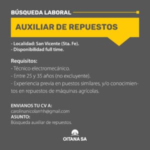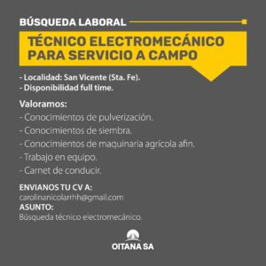 La Empresa de San Vicente Oitana S.A selecciona personal en busqueda laboral, los datos en las imagenes: