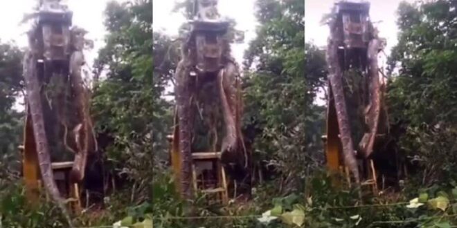 Un impactante video se viralizó en las últimas horas. Una anaconda que pesa 449 kilos y mide 10,4 metros de largo es levantada por una retroexcavadora con sus pinzas en Brasil.