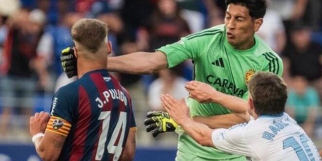 El arquero argentino Esteban Andrada protagonizó un escándalo en la Segunda División del fútbol español al agredir a un rival durante el cierre del «derbi aragonés» entre Real Zaragoza y Huesca.