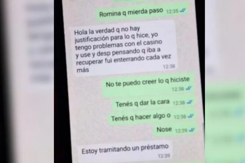 La acusada, presionada por los padres, reveló en un chat que gastó esa plata en el juego, y luego confesó que había pedido un préstamo para solventar lo perdido.