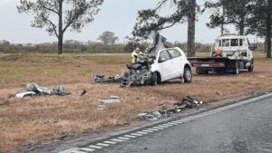 Esta mañana después de las 6, en el kilómetro 101 de la Autopista Santa Fe – Rosario, segmento comprendido entre la ciudad de Coronda y la localidad de Arocena en el departamento San Jerónimo, un automóvil chocó contra la parte trasera de un camión que viajaba en el mismo sentido, desde el norte hacia el sur. Como consecuencia del impacto, dos de los tres ocupantes del auto fallecieron, y el conductor fue extraído por policías y médicos que llegaron al lugar. Desde el momento del choque los agentes de la Unidad Regional XV San Jerónimo y de la Policía de Seguridad Vial, montaron un operativo con desvío del tránsito.
