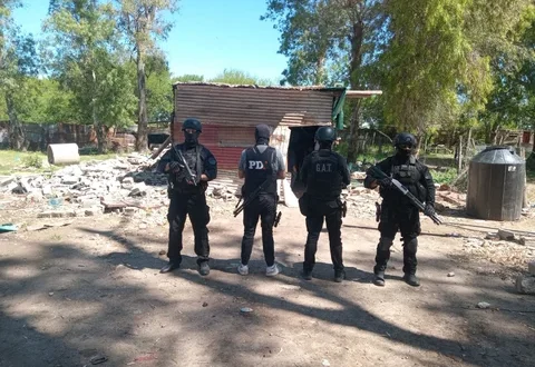 Debido a la complejidad del sector, la PDI contó con la colaboración de equipos tácticos de la Policía de Santa Fe, quienes efectuaron disparos con cartuchos antitumultos para garantizar la seguridad operativa y la irrupción en los objetivos.