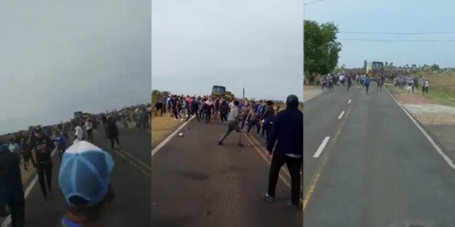 Personas a pie habrían atacado a los colectivos que transportaban a los cordobeses, desencadenando una respuesta también violenta desde los vehículos. Algunos testigos definieron el enfrentamiento como una “guerras campal, a machetazos, tiros y agresiones con armas blancas”.