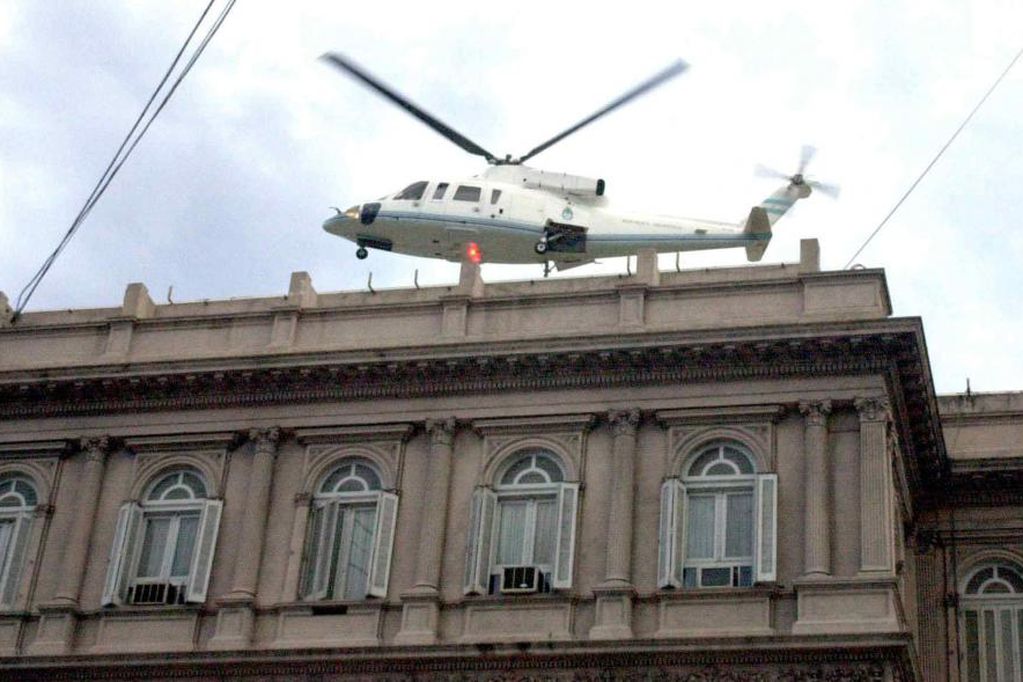 Tras su renuncia, el ex presidente Fernando de la Rúa se retira en helicóptero de Casa Rosada el 20 de diciembre de 2001. Foto: Víctor Bugge NA Tras su renuncia, el ex presidente Fernando de la Rúa se retira en helicóptero de Casa Rosada el 20 de diciembre de 2001. Foto: Víctor Bugge NA
