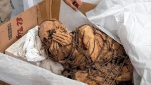 Los restos hallados en una cámara funeraria tienen entre 800 y 1.200 años. La momia pertenecería a un joven de entre 18 a 22 años en el momento de su muerte