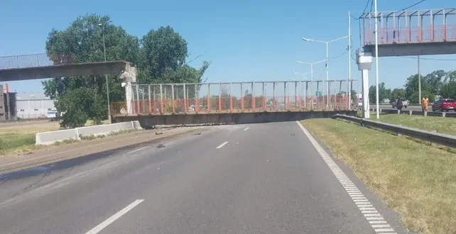 Impactante choque en la Circunvalación de Rosario: un camión derribó un puente peatonal y cortó el tránsito