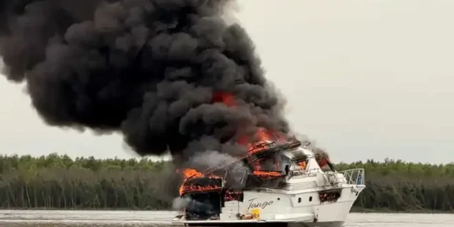 Las primeras imágenes que circularon en redes sociales y medios locales mostraron cómo las llamas envolvían por completo al yate, mientras el humo espeso se extendía varios metros en el aire, visible desde distintos puntos de la costa entrerriana.
