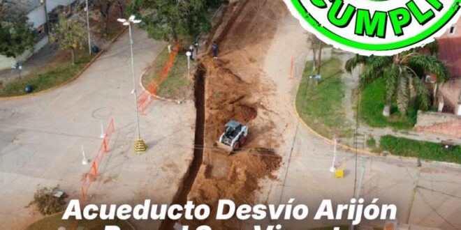 La Municipalidad de San Vicente anunció la realización del acto oficial de inauguración del Acueducto Desvío Arijón – Ramal San Vicente, una obra considerada histórica por el impacto que tendrá en la calidad y previsibilidad del suministro de agua potable en toda la ciudad. El evento se llevará a cabo el viernes 28 de noviembre a las 16:00, en la sede de la Cooperativa de Agua Potable, ubicada en Vicente Boffelli 157.
